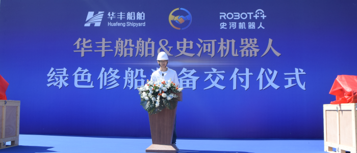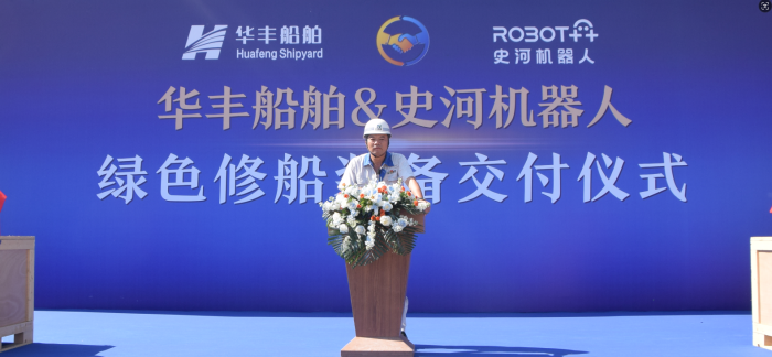發布時間:2024-08-03 點擊量:30112024年8月3日上午,舟山華豐船舶與史河機器人公司綠色修船裝備交接儀式順利完成。史河機器人創始人&CEO許華旸、COO蒲瀟、工程部總經理劉彥,華豐船舶董事長兼總經理鄔志祥、副總經理舒開鋒等出席儀式,儀式由總經理助理周武佩主持。